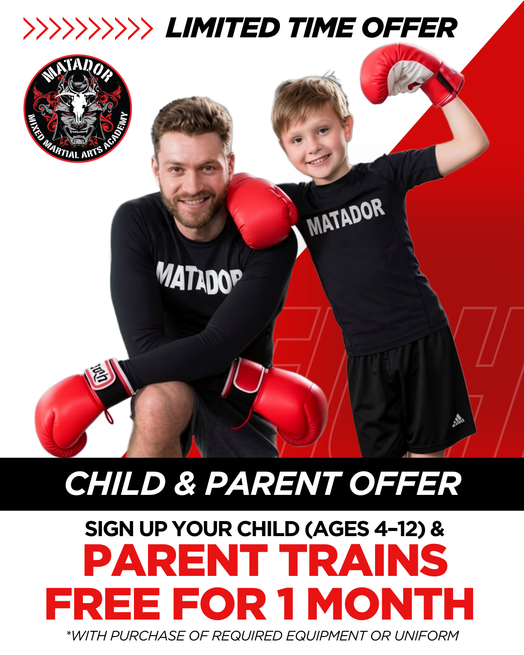 Sign up your child (ages 4–12) for a 3, 6, or 12-month membership and ONE PARENT trains FREE for 30 days with Unlimited access to ALL adult scheduled classes